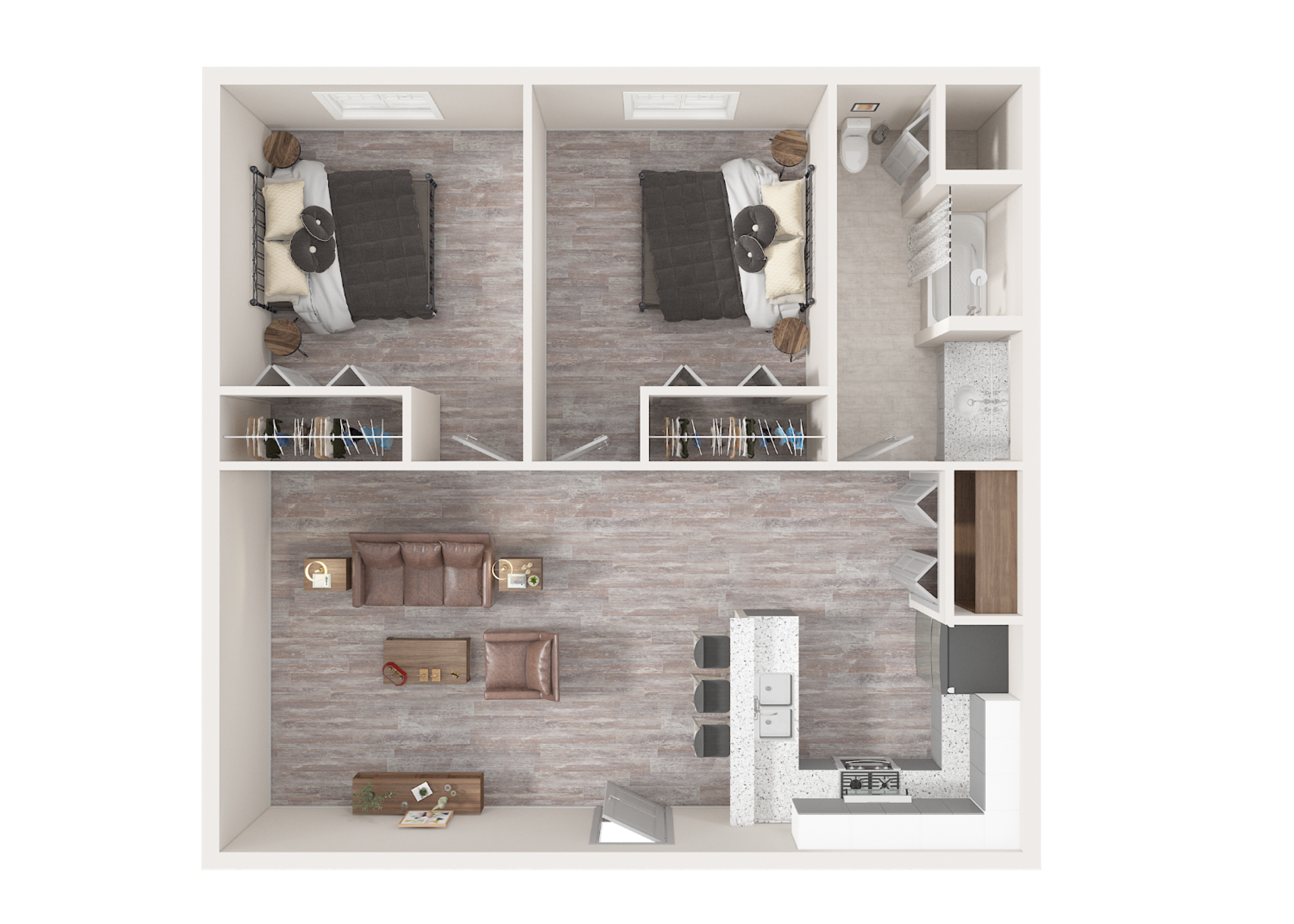 Summit delivers two-bedroom living in a brand-new apartment located in a quieter, more exclusive area of the community. Designed for space, comfort, and everyday functionality, this open-concept home features modern appliances, granite countertops, hardwood floors, and expansive walk-in closets. With central access and WiFi/cable TV readiness, Summit offers a bright, spacious layout ideal for sharing, working from home, or entertaining—fresh, modern, and set apart in a more private setting.